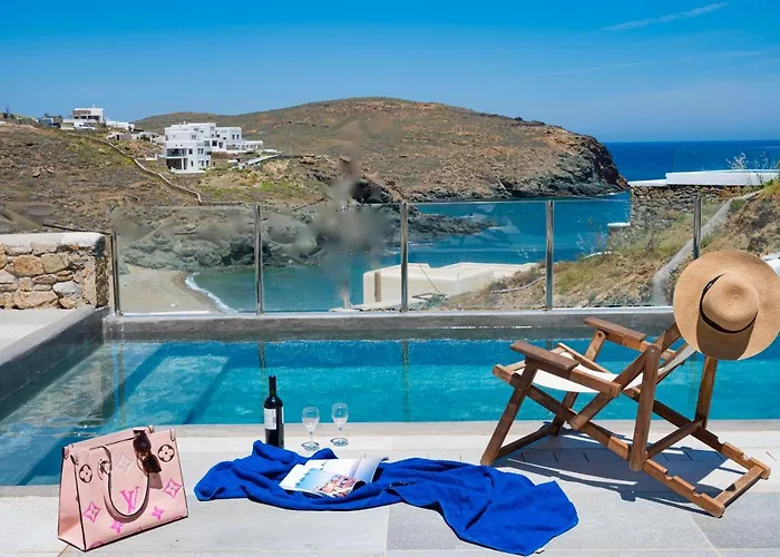 Situated about 10 minutes by car from Ano Mera, the 7-room Miramare Suites Mykonos includes an outdoor pool, as well as a plunge pool, a treatment room, and a Jacuzzi to relax in. Featuring access to a sunbathing terrace, the beachfront villa is located about 10 minutes by car from Kalafati Beach.